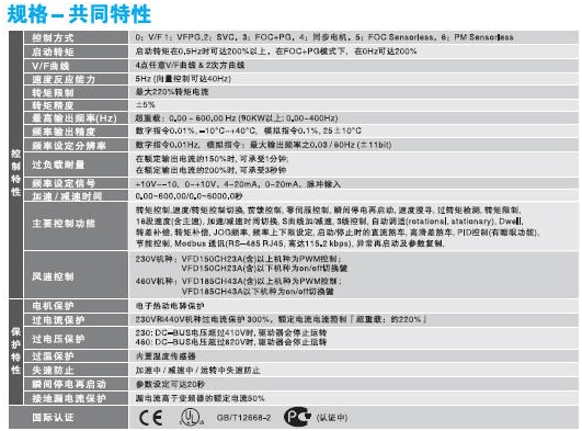 輸出頻率:0.00 ~ 600.00 Hz (90KW以上: 0.00~400Hz)